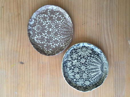 2017/07/06 2パターン⭐︎ 2パターンのレース化粧皿⭐︎ 赤土に白レースと白土に黒レースのセット皿です。 なかなか良いですね〜⭐︎ tagPlaceholderカテゴリ: 日記, 2017.7